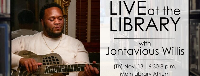 Toledo Lucas County Public Library welcomes all to our concert series, Live at the Library, a series featuring musical talent as they tour the country. This November, we welcome Jontavious Willis.