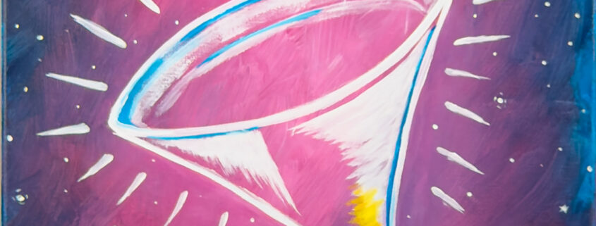 Join us at The Heights for Cosmo, a vibrant Paint & Sip Party featuring a glowing cosmopolitan glass set against a sparkling night-sky background. This bold, modern design blends bright color, cocktail-hour energy, and a touch of cosmic whimsy — making it perfect for girls’ night, date night, or a stylish winter outing.