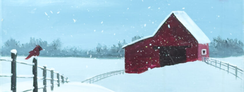 Guided step by step by one of our talented local artists, you’ll paint your own 16×20 Winter on the Farm canvas — no experience needed!