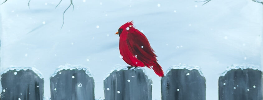 Our talented local artist will guide you step by step as you paint your own 16×20 canvas. You’ll learn simple blending and shading techniques that make your snowy background glow. Then, you’ll bring your cheerful red cardinal to life with color and texture. By the end, you’ll walk away with a beautiful finished masterpiece that’s ready to display or gift!