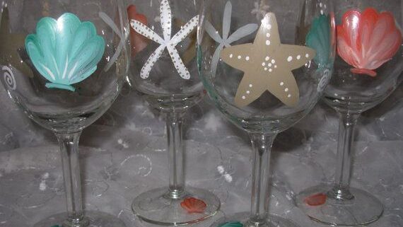 Think seashells, starfish, and soft ocean tones—each guest will receive two wine glasses to paint and customize with their own seaside flair.