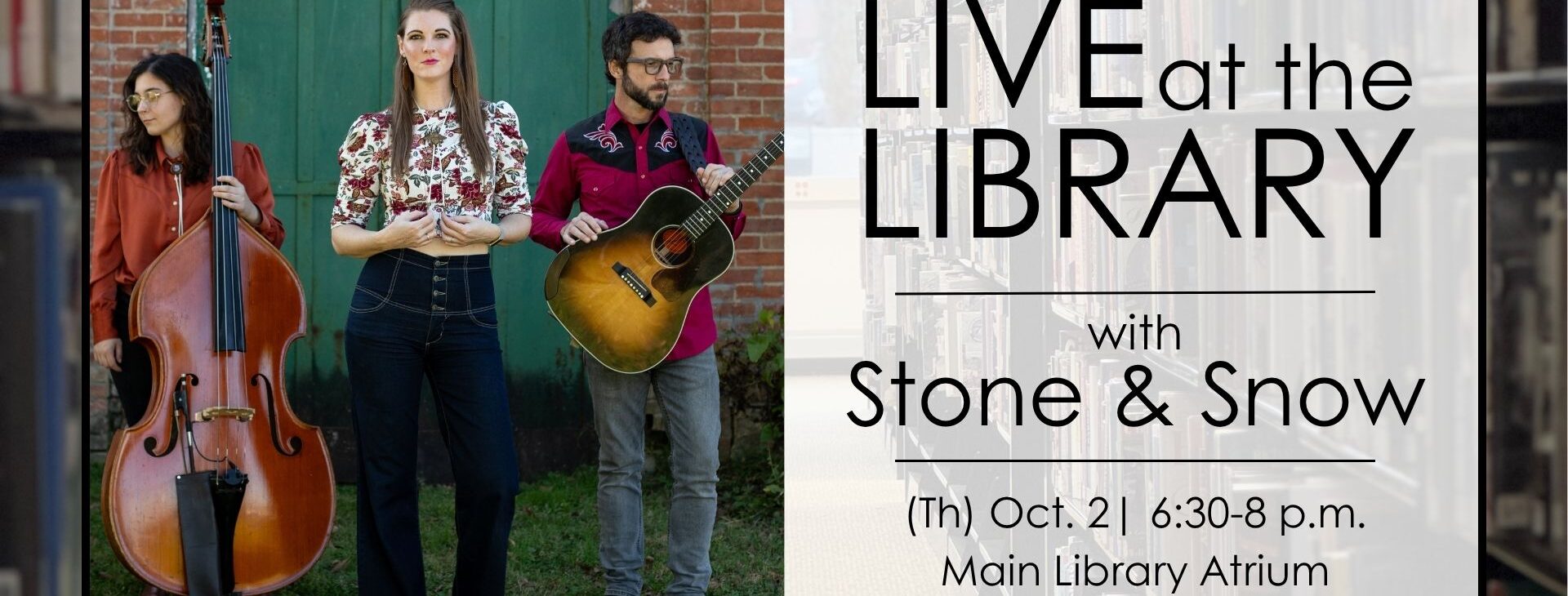 Toledo Lucas County Public Library welcomes all to our concert series, Live at the Library, featuring musical talent as they tour the country. This October, we welcome Stone & Snow! Stone & Snow is a Cincinnati-based Americana group led by songwriters and multi-instrumentalists Karen Bridges and Clint Thomson, joined in collaboration by Eva Reyes-Smith on […]