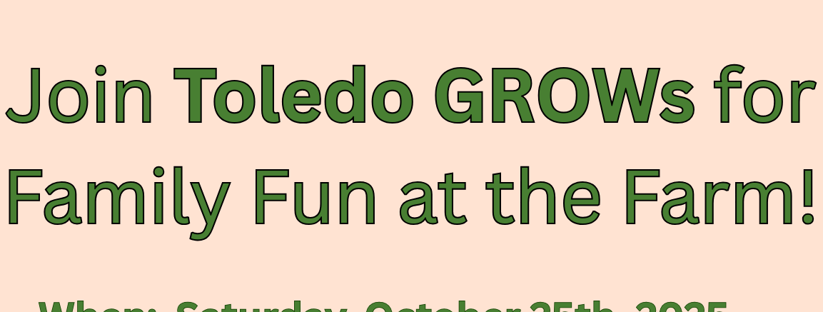 🎃🍂 You're Invited to Family Fall Fun Day at Toledo GROWs! 🍂🎃 Join us for a free day of autumn adventures at the Toledo GROWs Urban Farm! Bring the whole family for an afternoon packed with: 🍁 Games & Crafts 🌻 Build-Your-Own Scarecrow Station 🎨 Face Painting 🥕 Healthy, Harvest-themed Snacks 👻 And even more […]